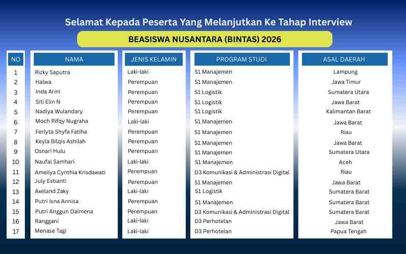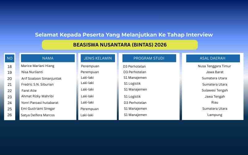 Dengan adanya Program Beasiswa BINTAS (Beasiswa Nusantara) dapat memberikan kesempatan emas bagi generasi muda untuk mengakses pendidikan tinggi berkualitas dan mempersiapkan diri memasuki dunia kerja.